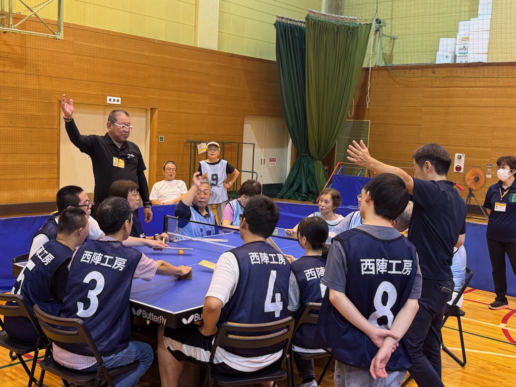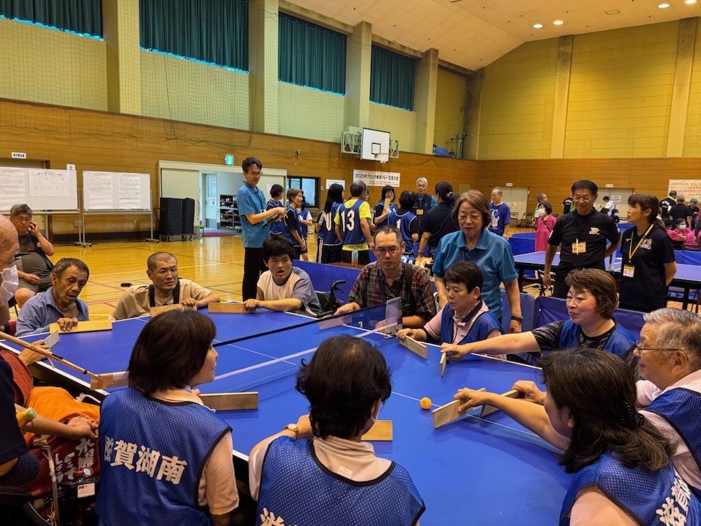 滋賀県では今まで卓球バレーは養護学校では実施されていましたが、一般の方への普及はされていない時に『全国障害者スポーツ大会』オープン競技で卓球バレーが開催する事が決定したと聞いた時、チームも少なく不安や心配が大きかったです。
