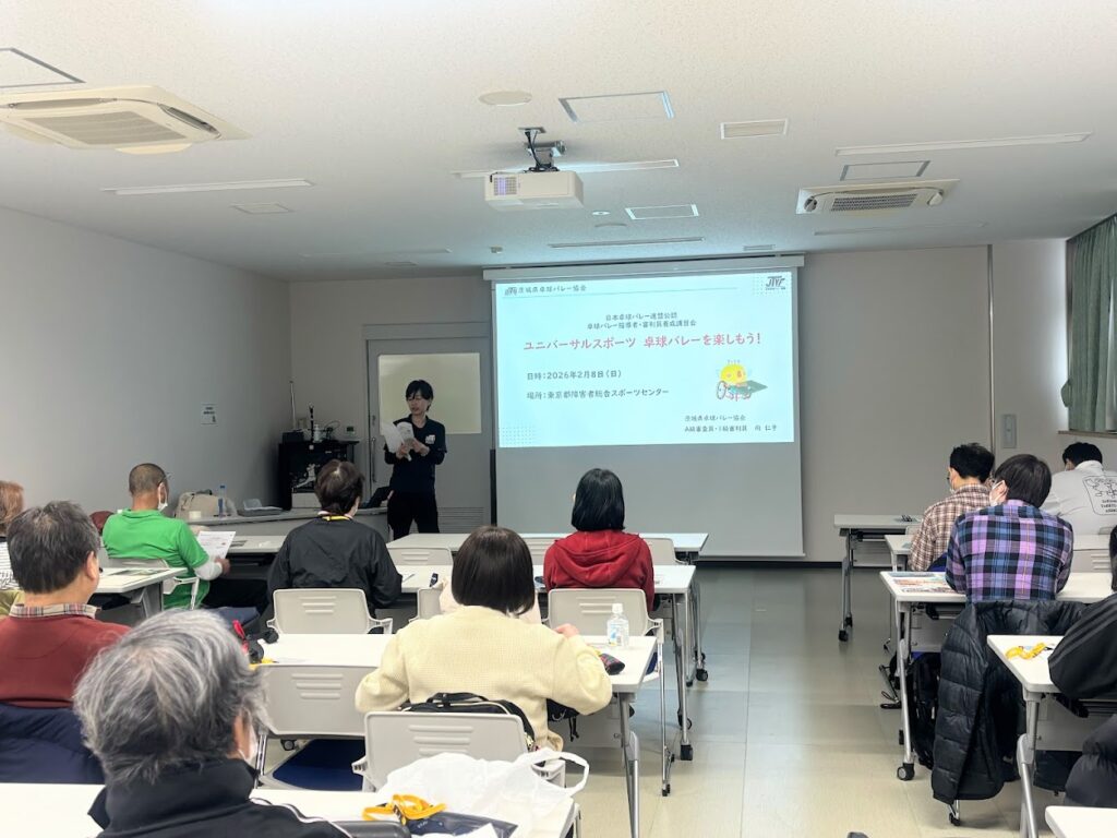 東京都心でも積雪が見られる中、東京都障害者総合スポーツセンターにおいて、東京北卓球バレー同好会主催「卓球バレー指導者養成講習会」が開催され、23名の方にご参加いただきました。